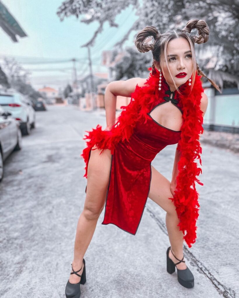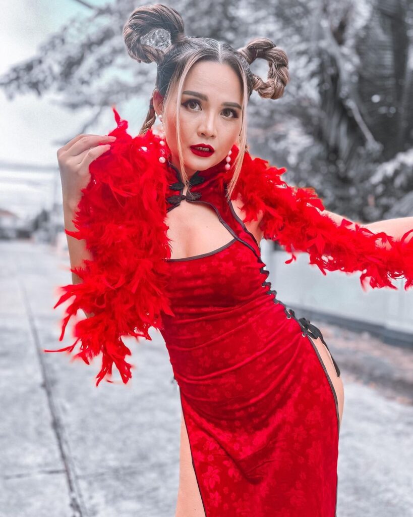 ล่าสุดสาว “ตั๊กแตน” ก็ทำเอาแฟนๆร้องว้าวอีกครั้ง หลังเจ้าตัวสวมชุดกี่เพ้าสีแดงแรงฤทธิ์สุดเซ็กซี่ แต่งองค์ทรงเครื่องแบบจัดเต็ม เป็นอาซ้อ ต้อนรับเทศกาลวันตรุษจีน แต่บอกเลยว่าไม่ธรรมดา เพราะชุดอาซ้อนั้นแซ่บสุดๆ แหวกลึก เว้าข้าง อวดให้เห็นสะโพกเบาๆ แหวกเว้าสุดพลัง บวกกับท่าโพสต์แบบพริกร้อยเม็ด เด็ดยิ่งกว่าชุด ยืนโพสต์ท่าฉีกขากลางซอย ทำเอาแฟนๆหลุดโฟกัส เพราะไม่ว่าจะมองมุมไหนก็ทำใจสั่นไปหมดเลยจ้า