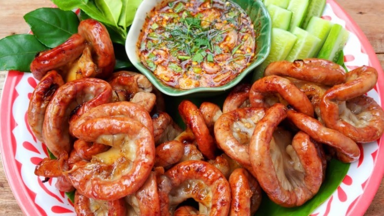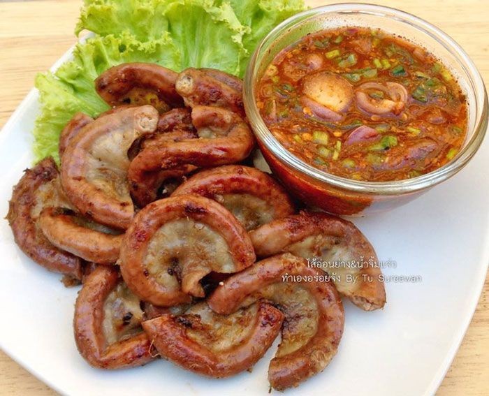 ไส้อ่อนย่าง น้ำจิ้มแจ่ว