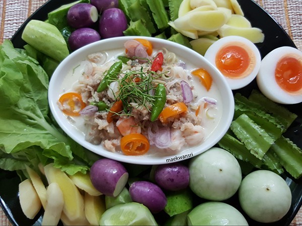 4.ตักเสริฟพร้อมผักสดได้เลย