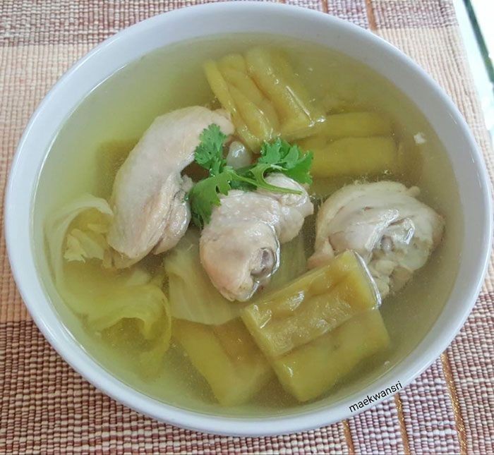 แกงจืดไก่กับมะระและผักกาดดอง