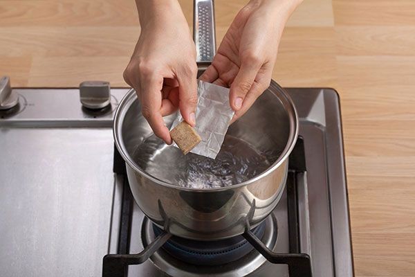 5. ตั้งหม้อน้ำบนไฟกลาง พอเดือดใส่คนอร์ซุปเห็ดหอมก้อนลงในหม้อ คนให้ละลาย แค่นี้ก็ได้น้ำซุปรสกลมกล่อม หอมกลิ่นเห็ดหอมแล้ว