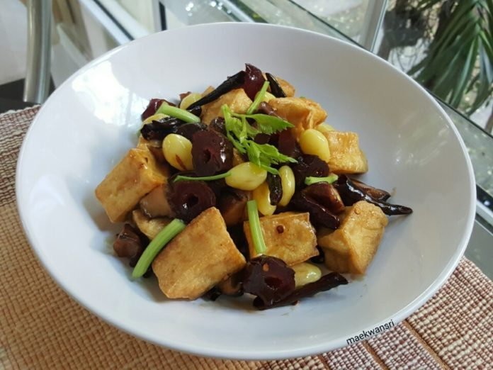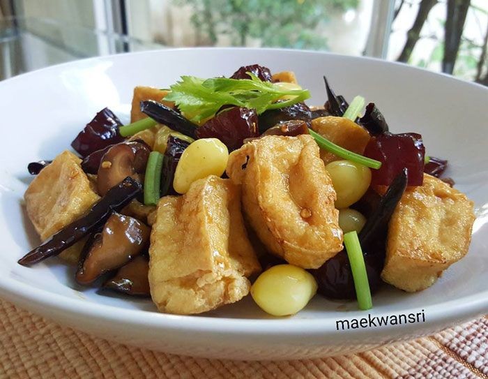 3.ใส่เต้าหู้ทอด พุทรา แปะก๋วย ลงไปผัดให้เข้ากัน ปรุงรสตามชอบ ผัดให้เข้ากันอีกครั้ง