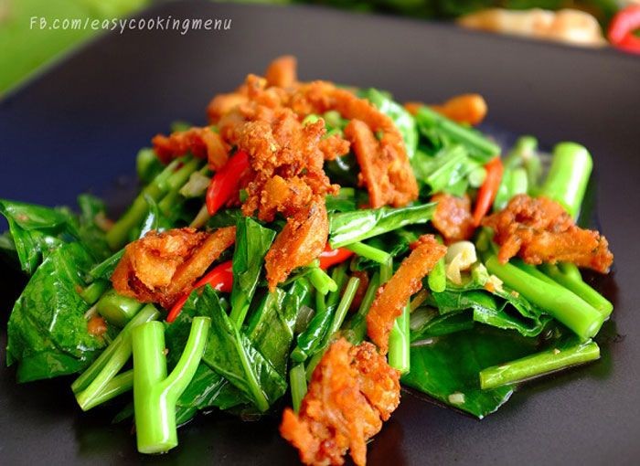 วิธีทำ คะน้าหมูกรอบเจ