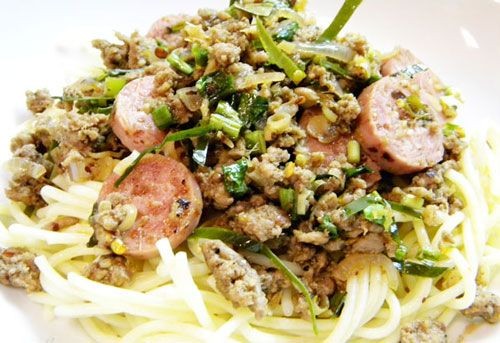 1.ลวกเส้นสปาเกตตี้พอสุก พักไว้