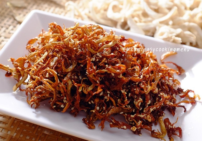 - ใส่น้ำมันลงในกระทะ ตั้งไฟกลางพอร้อน ใส่เห็ดนางรมลงทอดพอเหลืองกรอบ ตักขึ้นให้สะเด็ดน้ำมัน