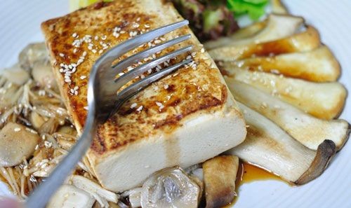 อาหารเจ..สเต็กเต้าหู้ราดซอสเห็ด