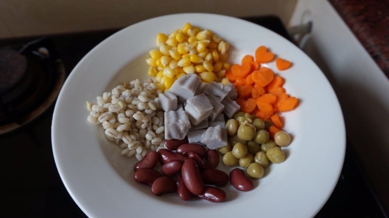 - ล้างลูกเดือยให้สะอาด ใส่เกลือและน้ำต้มจนสุก พักใส่ตะแกรงให้สะเด็ดน้ำ
