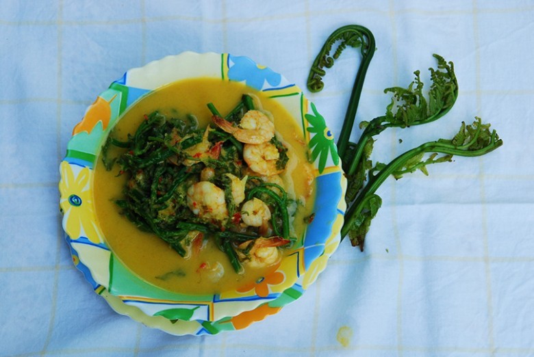 อาหารภาคใต้..แกงคั่วผักกูดกับกุ้ง