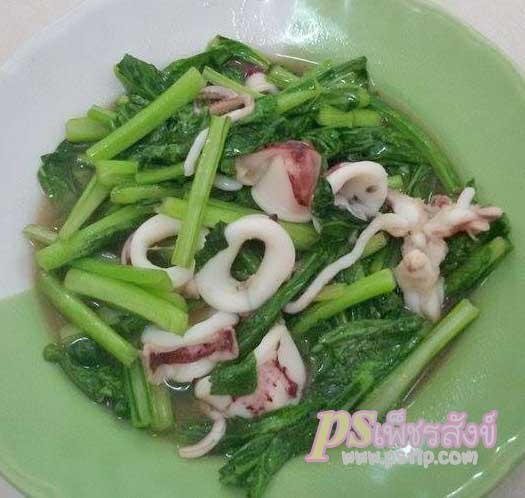 วิธีทำ อาหารภาคใต้ ปลาหมึกผัดกวางตุ้ง