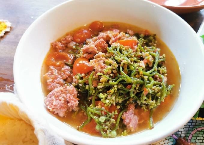 2. ใส่ดอกผักปรัง มะเขือเทศ ปรุงรสด้วยน้ำปลา ชิมรสตามชอบ ต้มจนผักสุก โรยหน้าด้วยต้นหอม ยกลงจากเตา