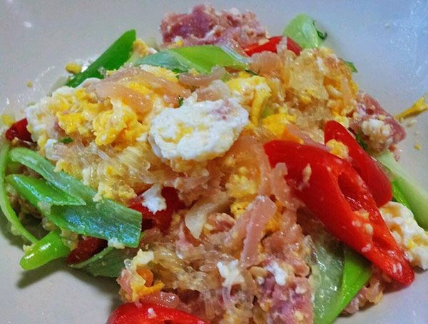 - ใส่วุ้นเส้น ผัดจนวุ้นเส้นสุก