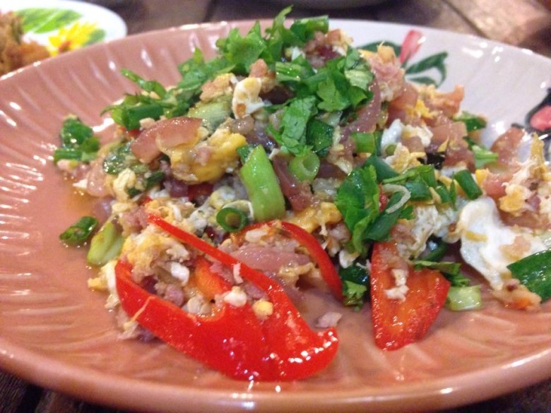 - ใส่ไข่ไก่ ผัดให้เข้ากัน