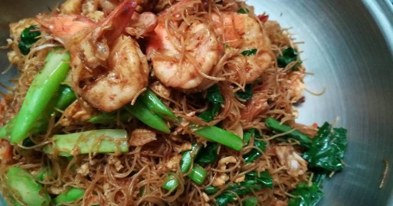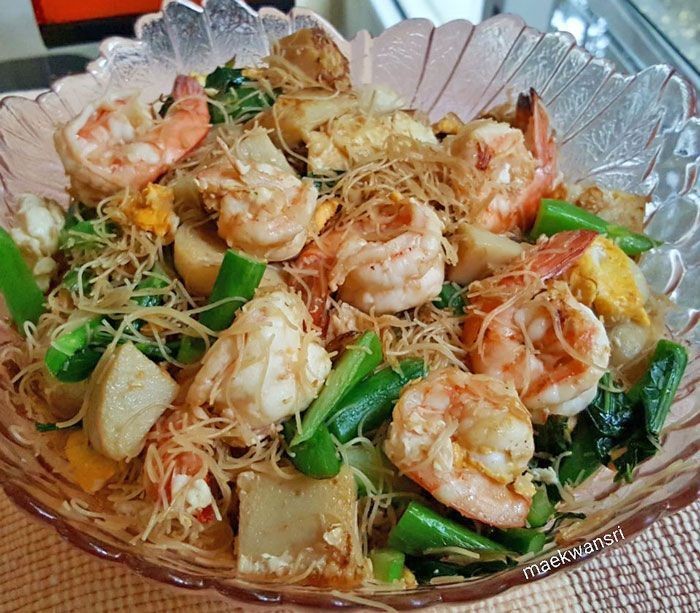 อาหารจานเดียว..ผัดซีอิ๊วเส้นหมี่กับกุ้ง