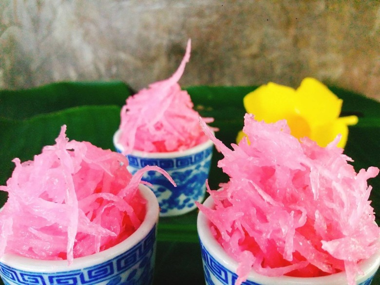 - นำส่วนผสมทั้งหมด ใส่กะทะทองแดง แล้วกวนให้เข้ากันจนเริ่มเหนียวเล็กน้อย