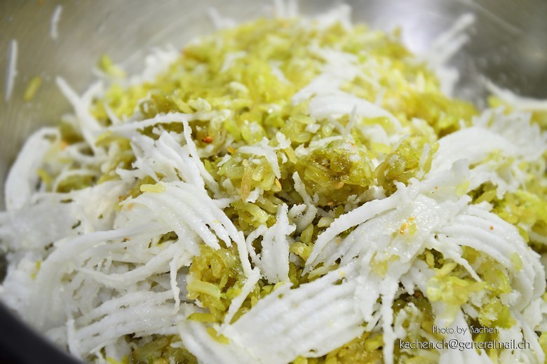 - ขูดมะพร้าวทึนทึกให้หมดผลประมาณ 1 1/2 ถ้วยตวง นำไปนึ่งบนน้ำเดือด