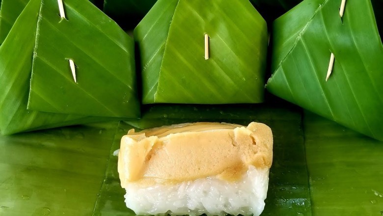 - นำส่วนผสมเทใส่แบบหรือพิมพ์ที่เตรียมไว้ แล้วนำไปนึ่งในน้ำเดือดประมาณ 20 นาทีหรือจนสุกทั่ว ปิดไฟ นำออกมาทิ้งไว้ให้เย็น