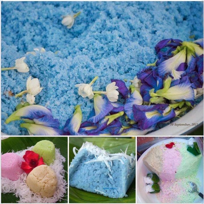 2. นำแป้งที่อิ่มน้ำ ใส่ที่ร่อนแป้งแบบละเอียด ใช้ปลายนิ้วช่วยรวนตัวแป้งให้ผ่านตกลงไป ใส่รังถึงที่ปูด้วยผ้าขาวบางไว้ นำไปนึ่งที่ในลังถึงที่ตั้งไฟแรงให้น้ำเดือด 40 – 45 นาที (คอยดูอย่าให้น้ำในลังถึงแห้ง)