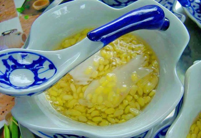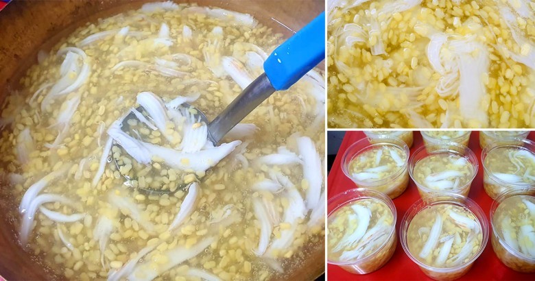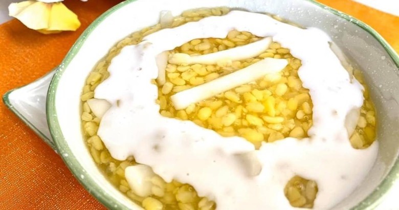 - ถั่วเขียวผ่าซีก มากน้อยตามชอบ นำมาล้างหรือซาวในน้ำสะอาด 3 น้ำ แล้วแช่น้ำสะอาดทิ้งไว้ประมาณ 3-4 ชม.