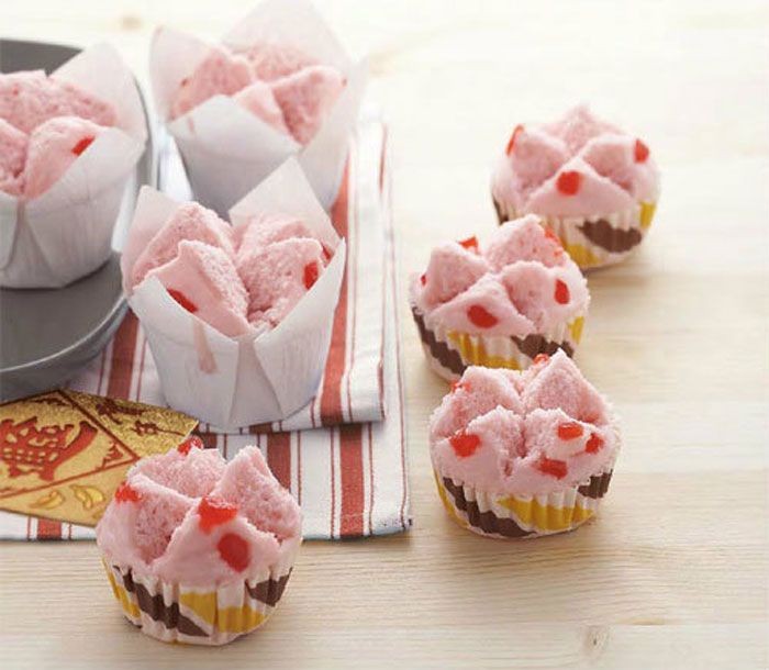 4. จากนั้นนำส่วนผสมไปหยอดลงในแบบหรือพิมพ์ที่เตรียมไว้ แต่งหน้าด้วยลูกเกด (แล้วแต่ความชอบ) และนำไปนึ่งโดยใช้ไฟแรงๆ ประมาณ 10 นาทีหรือจนสุก จึงยกลง