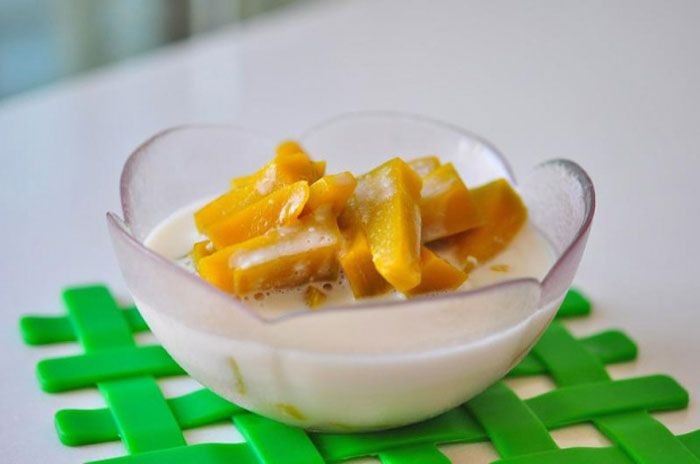 - เริ่มจากล้างทำความสะอากฟักทองแล้วหั่นเป็นชิ้นพอคำ หากใช้ฟักทองญี่ปุ่นไม่ต้องปอกเปลือกก็ได้ แต่ถ้าใช้ฟักทองไทยๆ ก็ให้ปอกเปลือกออกเสียหน่อยจะได้ไม่แข็งมาก จากนั้นนำหางกะทิใส่หม้อ ตั้งไฟให้เดือด ปรุงรสด้วยน้ำตาลปี๊บ น้ำตาลทราย และเกลือ ชิมรสดูให้หวานกลมกล่อม แล้วใส่ฟักทองลงไป ต้มต่อไปเรื่อยๆ จนฟักทองสุกนิ่มดี จากนั้นใส้หัวกะทิตามลงไป รอให้เดือดอีกครั้งก็สามารถตักมาลองชิมความอร่อยได้เลย