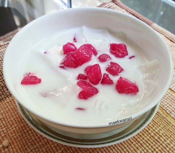 วิธีทำ ทับทิมกรอบนมสดมะพร้าวอ่อน