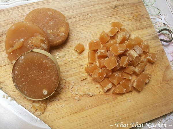• น้ำตาลแว่นที่ได้มาต้องตัดแบ่งอีกครั้งเพื่อนำไปทำไส้ กะขนาดอย่าให้ใหญ่เกินไปนะคะ ไม่เช่นนั้นขนมของเราจะใหญ่ตามไปด้วย