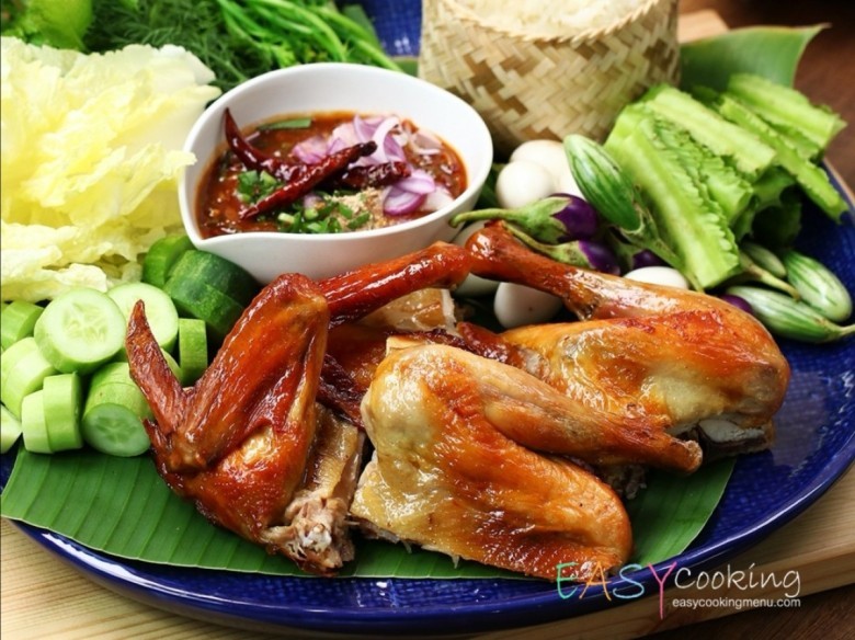 ไก่บ้านย่างสมุนไพร น้ำจิ้มแจ่ว