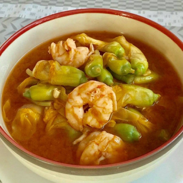อาหารภาคใต้..แกงส้มดอกแคกับกุ้ง