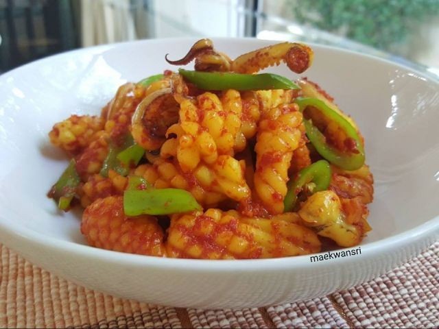 อาหารภาคใต้..ปลาหมึกผัดขมิ้นกับเกลือ
