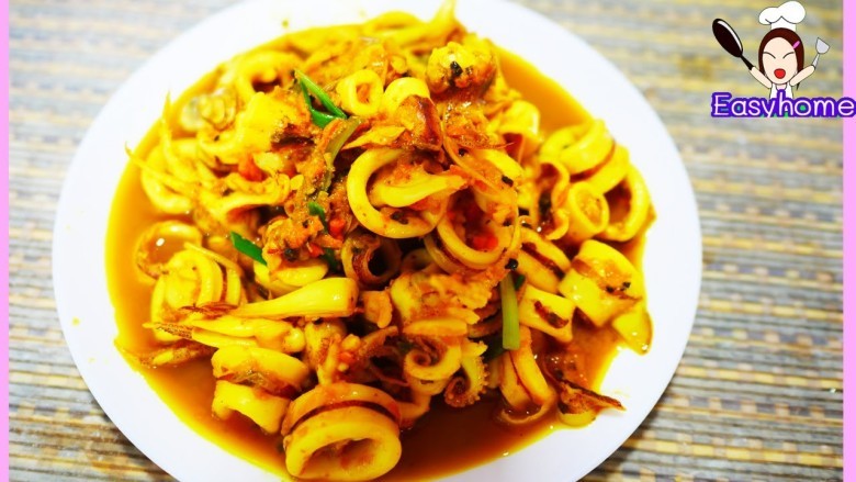 1.โขลกขมิ้นกับเกลือให้ละเอียด นำมาคลุกเคล้ากับปลาหมึกให้เข้ากัน