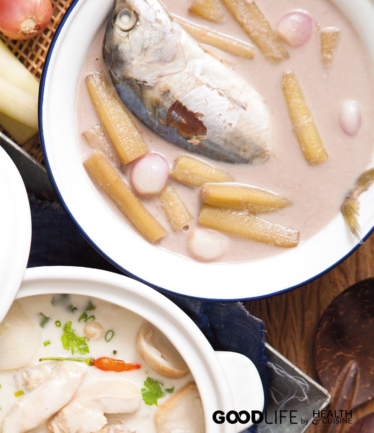 - ชิมให้ได้รสเค็ม เปรี้ยว หวาน ใส่สายบัว ใส่ปลาทู พอเดือดยกลง
