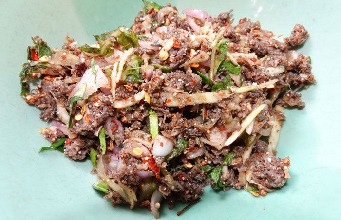 - ปรุงรสด้วยพริกป่น ข้าวคั่ว หอมหัวแห้งซอย น้ำปลา และน้ำปลาร้า ปรุงรสตามใจชอบ