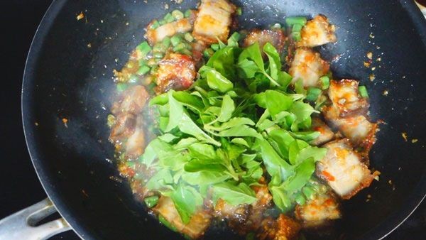• สุดท้ายใส่กะเพราลงไปค่ะ