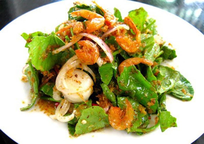 2.เคล้าใบบัวบกกับกุ้งแห้ง ใส่น้ำปลา น้ำตาล น้ำมะนาว กะปิ หอมแดง พริกขี้หนู เคล้าส่วนผสมให้เข้ากัน จัดใส่จานเสริ์ฟ