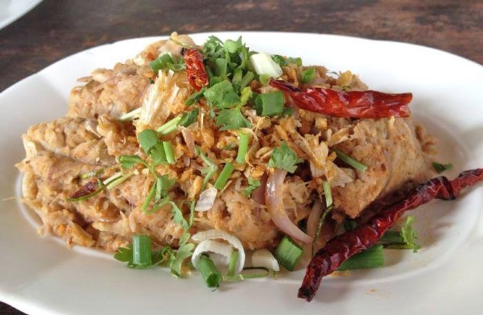 - ตักใส่จานโรยด้วยใบมะกรูด ผักชี หอมแดงเจียว กระเทียมเจียว นิยมรับประทานกับแคบหมู หอมหัวใหญ่
