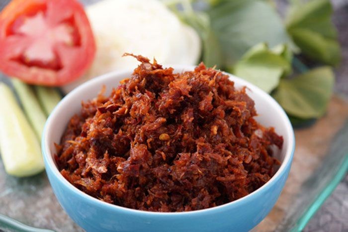 รับประทานกับผักนึ่ง เช่น ถั่วฝักยาว มะเขือยาว กะหล่ำปลี ผักกาด ผักกวางตุ้ง ฟักทอง หมูฮุ่ม ปลาบ้วง (ปลาช่อนแห้ง) นึ่ง