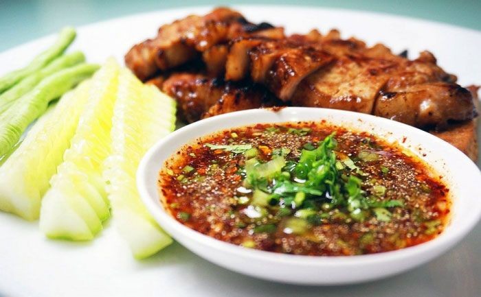 วิธีทำ น้ำจิ้มแจ่ว1. นำน้ำปลา น้ำมะขามเปียก น้ำตาลทราย ใส่หม้อตั้งไฟพอเดือด ยกลง ปล่อยไว้ให้เย็น 2.เติมพริกป่น ข้าวคั่ว คนให้เข้ากัน 3.ตักใส่ภาชนะ โรยหน้าด้วยหอมแดง ต้นหอม