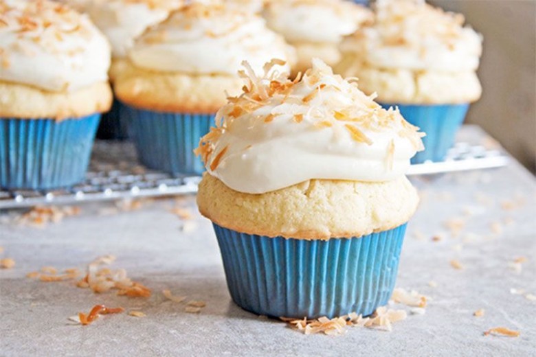 วิธีทำ คัพเค้กมะพร้าว นำน้ำตาล 1 ถ้วย แป้งสาลีเอนกประสงค์ ผงฟู เกลือ ร่อนให้เข้ากันใส่อ่างผสมจากนั้นใส่มะพร้าวอบแห้ง คนให้เข้ากัน แล้วเขี่ยตรงกลางให้เป็นหลุม ใส่น้ำมัน นม ไข่แดง กลิ่นมะพร้าว ลงไปตรงกลางหลุมแล้วตีเร็วๆ แรงๆ จนส่วนผสมเข้ากันดีแล้วให้พักไว้