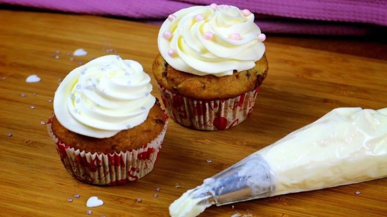 2.ตีเนยสดกับเนยขาวจนขึ้นฟูขาว เติมน้ำเชื่อมในส่วนผสมข้อที่ 1 พอเข้ากัน ตีต่ออีกสักครู่เติมกลิ่นวานิลลาและนมข้นจืด จนเข้ากันดีใช้ปาดเค้กและบีบตกแต่งหน้าเค้ก