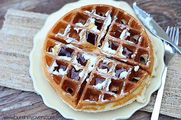 วิธีทำ วาฟเฟิล ร่อนแป้ง เบกกิ้งโซดา น้ำตาล เกลือเข้าด้วยกัน ผสมนมเปรี้ยว นม และเนยละลายลงในไข่แดง ทีละน้อยๆ คนเบาๆ พอเข้ากัน ใส่แป้งลงไปในส่วนผสม คนตะล่อมกลับไปมาให้เข้ากันจนเป็นเนื้อเดียวกัน ใส่ไข่ขาวตะล่อมเบาๆ พอเข้ากัน ปล่อยไว้ประมาณ 30 นาที จึงทอด