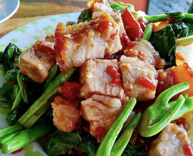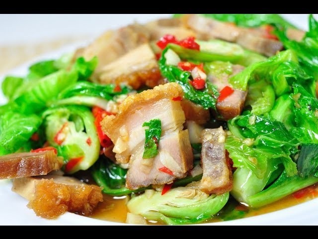 วิธีทำ อาหารจานเดียว..คะน้าหมูกรอบ