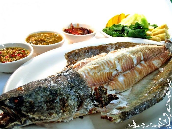 - ผักที่ใช้รับประทานกับปลาเผานิยมใช้ผักต้มสุกจนนุ่ม เช่น ถั่วฝักยาว กะหล่ำปลี มะเขือ