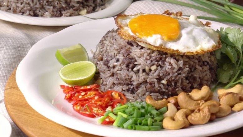 - ใส่ข้าวสวยลงไป ผัดไปเรื่อยๆ จนเครื่องทั้งหมดคลุกข้าวจนทั่ว จึงปิดเตา ยกลง และพักไว้