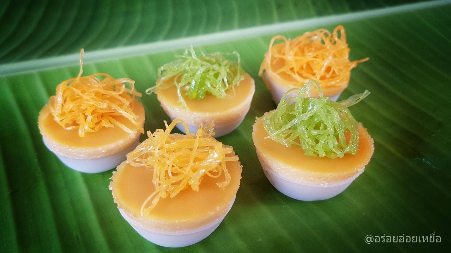 - ตักหน้าสังขยาหยอดบนขนมให้เต็มพิมพ์นึ่งต่อไปจนสุกประมาณ5-10นาที(ทั้งนี้ต้องดูขนาดพิมพ์อีกที)