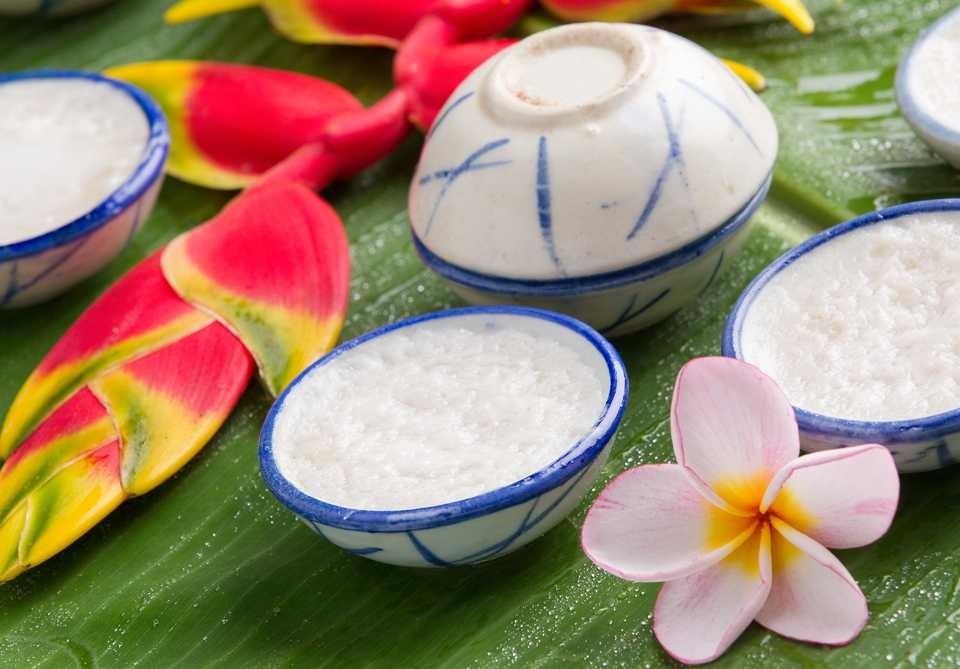 วิธีทำ ขนมถ้วย1.เตรียมทำตัวขนมโดย นำหางกะทิไปผสมกับแป้งข้าวเจ้า, แป้งเท้ายายม่อม, น้ำตาลปี๊บและน้ำใบเตย นวดจนเข้ากันดี นำไปกรองด้วยผ้าข้าวบางและพักไว้