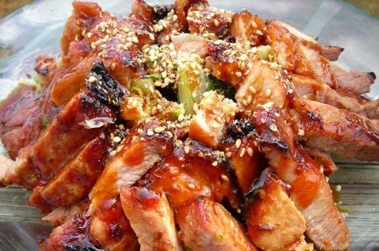 วิธีทำ อาหารญี่ปุ่น หมูย่าง เทอริยากิ นำหมูมาล้างให้สะอาด แล้ว นำ ซอสเทริยากิ 1 ถ้วย เกลือ ไวน์ น้ำมันงา และงาคั่ว ผสมหมักหมูไว้อย่างน้อย 4.ช.ม.