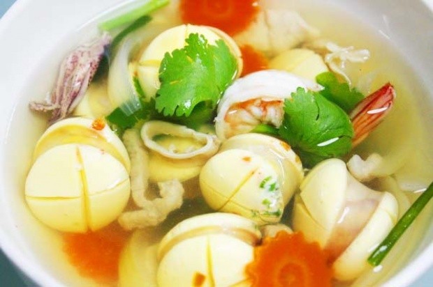 - ต้มน้ำด้วยไฟอ่อนๆ (ห้ามใช้ไฟแรงเด็ดขาดเพราะจะทำให้ไส้อ่อนแตก) ใส่ไส้อ่อนลงไปต้มในน้ำจนไข่สุกดี ปิดไฟ นำออกมาสะเด็ดน้ำ ทิ้งไว้ให้เย็นจึงนำไส้อ่อนมาหั่นตามขวาง เพื่อความสวยงามอาจบากผิวด้านบนและล่างให้เป็นรูปกากบาท