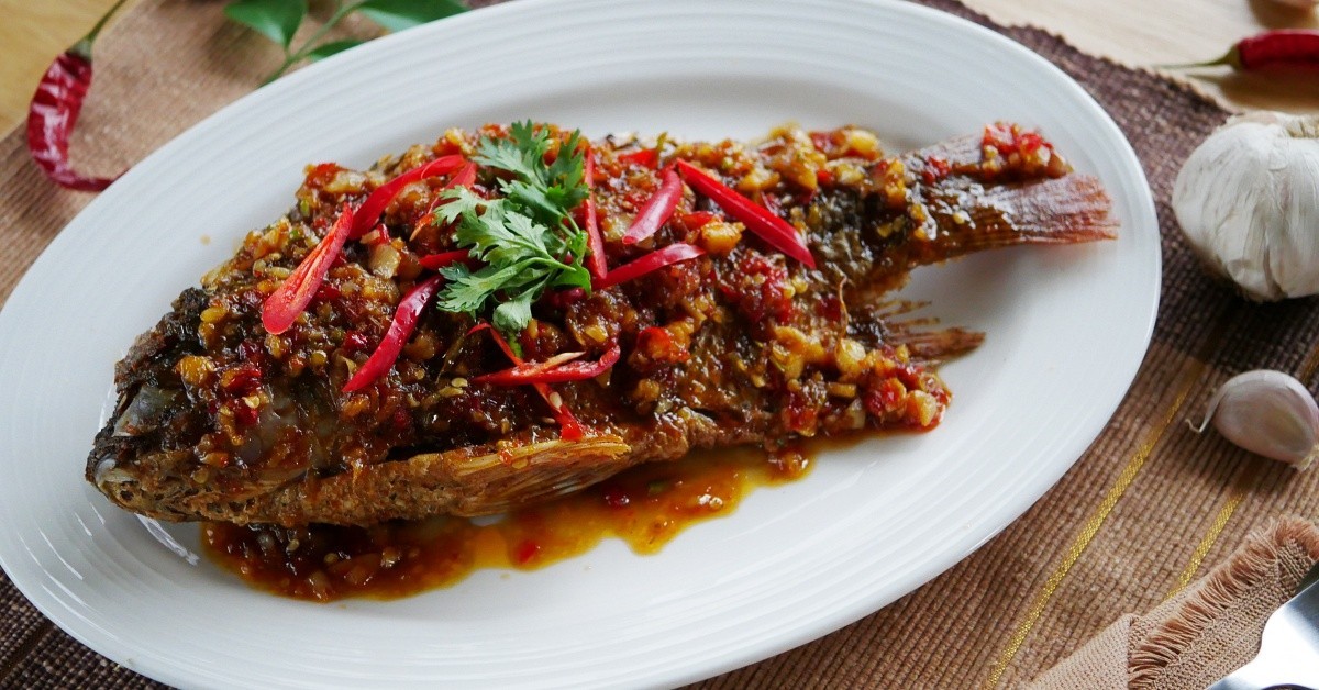 4. ตักน้ำสามรสราดบนปลาที่ทอดเตรียมไว้ แต่งจานให้สวยงาม พร้อมเสิร์ฟ