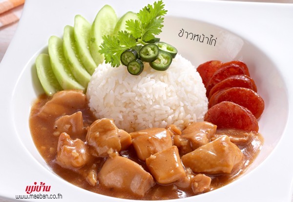 3. จัดจานข้าวหน้าไก่ พร้อมกุนเชียงทอด แนมกับพริกชี้ฟ้าสีเขียว และก้านต้นหอม เสิร์ฟกับพริกน้ำส้มโขลกกับกระเทียม