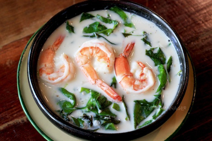 1. ต้มกะทิพอเดือด ปรุงรสด้วยเกลือป่น น้ำปลา กะปิ พอเดือดใส่ยอดเหรียง กุ้ง ชิมรสให้มีรสเค็มนำ พอเดือดยกลง